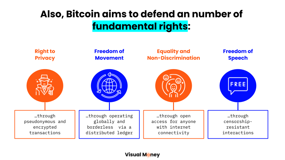 Privacy is a fundamental right that Bitcoin aims to defend through pseudonymous and encrypted transactions.