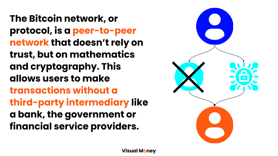 It is a peer-to-peer network that allows transactions taking place without a third trusted intermediary, a network where mathematics and cryptographic proof replace the need to trust in human reliability and accuracy.